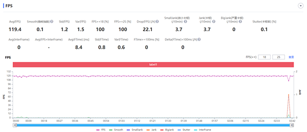 在快速戰(zhàn)局期間,游戲平均幀率為119.4 FPS。