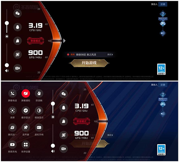拯救者Y70的游戲助手也有點意思,采用的二段式設(shè)計。進(jìn)入游戲界面之后,屏幕左側(cè)上方向屏幕內(nèi)側(cè)滑動,類如快速切換手機性能模式、微信、截圖、一鍵回錄前15s視頻等常用功能會顯示在一段菜單,而一些不常用的游戲功能會隱藏在二段菜單里,再次向屏幕內(nèi)滑動才會出現(xiàn)。