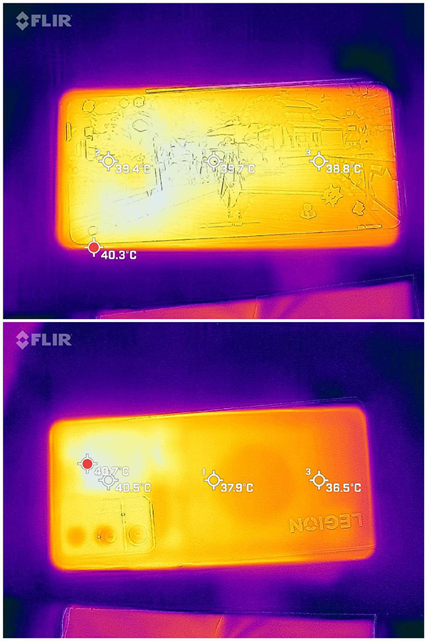除了游戲幀率高以外,拯救者Y70的溫度也控制得非常不錯,實測40分鐘《原神》游戲之后,機身背面的最高溫度為40.7℃,正面的最高溫度40.3℃,上手只有溫?zé)岣小O啾纫酝旪?手機高達(dá)50℃的溫度,拯救者Y70這次的游戲表現(xiàn)不僅幀率高、幀率穩(wěn)而且溫度還低。這與拯救Y70手機采用的霜刃液冷散熱系統(tǒng)也有直接的關(guān)系,由多層石墨烯與超大VC組成的散熱,配合NTC溫度感應(yīng)矩陣提供了很好的散熱策略與效果。