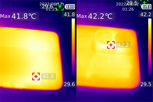 經(jīng)過(guò)溫度測(cè)試,iQOO Z6正面最高溫度41.8攝氏度,背面最高溫度42.2攝氏度。