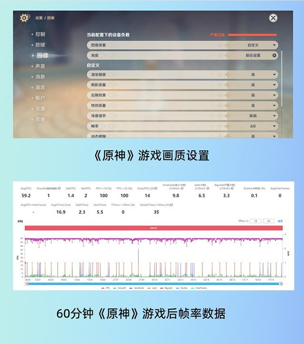 優(yōu)秀的性能表現(xiàn)與強大的散熱配置結合為一加Ace Pro出色的游戲體驗提供了硬件基礎,在實際的測試中,我們將畫質選項設置為極高畫質+60幀,一加Ace Pro 60分鐘游戲的實測平均幀率為59.2幀,幀率曲線波動極小,全程沒有出現(xiàn)大幅度降幀現(xiàn)象,游戲體驗相當出色。