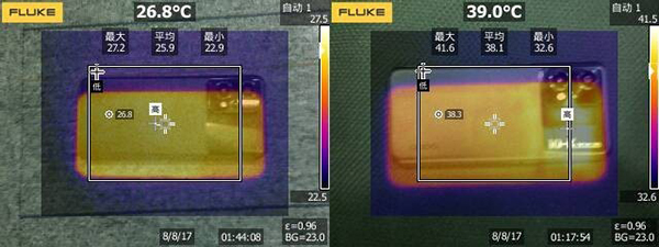 左:測試前溫度;右:測試后溫度