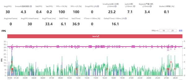 二、和平精英—30幀率,游戲30分鐘以上,平均幀率30fps