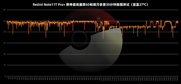 另外一款手機性能“專業(yè)測試”游戲《原神》中,同樣的30分鐘游戲時間,游戲畫質全部開到最高以及60幀,Redmi Note11T Pro+耗電為12%,手機后殼溫度為33.7,這個溫度表現(xiàn)非常厲害,是第一次有手機在同樣環(huán)境和溫度情況下,《原神》的溫度比《和平精英》還低的。