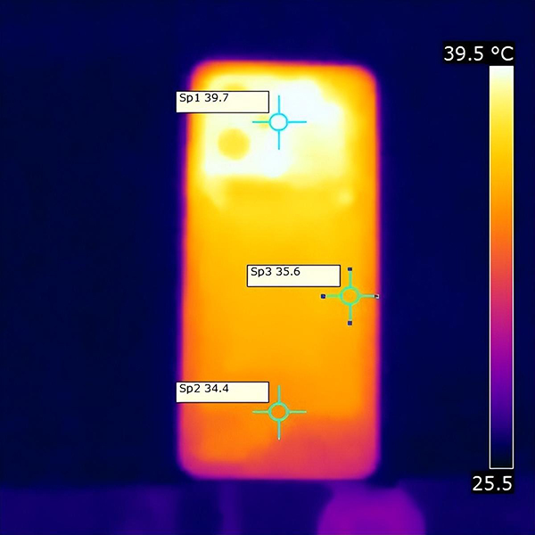 在這個(gè)散熱方面,Note11T Pro+采用VC液冷+7層石墨組成的立體散熱系統(tǒng),其中VC面積達(dá)到2268mm2,相比上代增加32%。經(jīng)過實(shí)測(cè),Note11T Pro+在室溫24℃的環(huán)境下運(yùn)行高畫質(zhì)《原神》30分鐘,機(jī)身最高溫度為39.7℃,出現(xiàn)在攝像頭附近,相比動(dòng)輒40多℃的驍龍8機(jī)型表現(xiàn)好上很多。