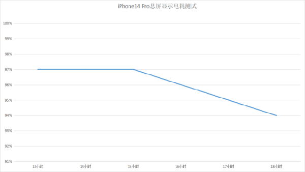 在第三輪的測試中,iPhone 14 Pro的電量波動更大。雖然,該機(jī)在前半程還保持著每兩小時電量下降1%,但是到了后半程,電量開始出現(xiàn)大幅度下滑,平均每一小時電量就會下降1%。但截止到現(xiàn)在,筆者對iPhone 14 Pro的表現(xiàn)依然非常滿意,耗電量比很多安卓手機(jī)優(yōu)化的更加出色。當(dāng)然,也出現(xiàn)了一個問題,iPhone上的息屏顯示邏輯與安卓相比,還是存在一些不同。