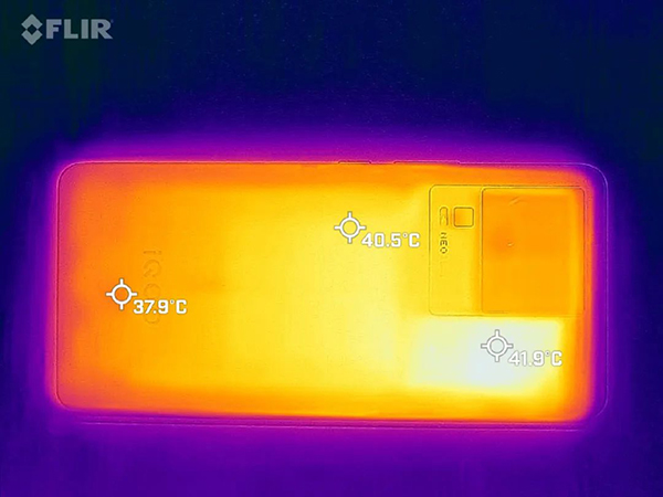 相對的,iQOO Neo7的溫度表現(xiàn)很不錯,機身背面最高溫度42.4℃,握持區(qū)域的中框最高溫度35.8℃,iQOO堆了那么多的散熱是有效果的。