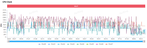 iQOO Neo7的調(diào)教方式與前代一致,X2超大核和3個A710大核的上限都鎖在1.8GHz,超大核利用率88.79%,最高能達到100%,3個大核最高利用率也能達到80%。按道理說,這個調(diào)度比前代更加激進,幀數(shù)不應(yīng)該是現(xiàn)在這個表現(xiàn)。
