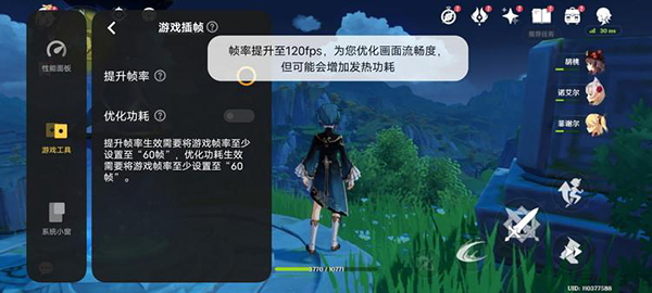 而針對《原神》這款游戲,iQOO Neo7更是支持兩種不同的插幀模式。在這款游戲的測試中,我們選擇了從天衡山的高處出發(fā),一路跑圖直到璃月港深處的船上。