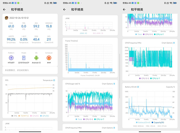 考慮到產(chǎn)品定位,我們決定測試一下《和平精英》的表現(xiàn)。在“高清+60fps”模式下,Note12 Pro+的表現(xiàn)還可以,在長達(dá)20分鐘的正常匹配游戲過程中,游戲幀數(shù)始終維持在60幀上下,平均幀數(shù)為59.7幀。諸如《和平精英》《王者榮耀》這類主流手游,天璣1080還是可以比較流暢地游玩的。
