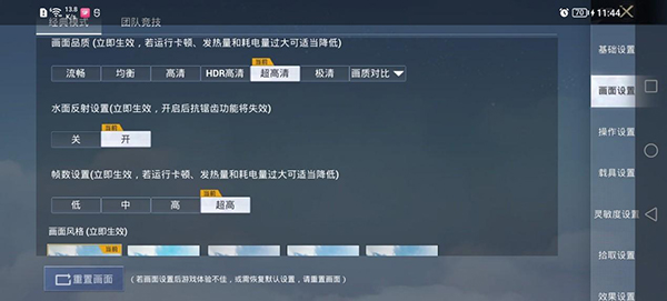 和平精英中將畫質(zhì)設(shè)置為超高清,水面反射打開,并將幀數(shù)設(shè)置為超高。