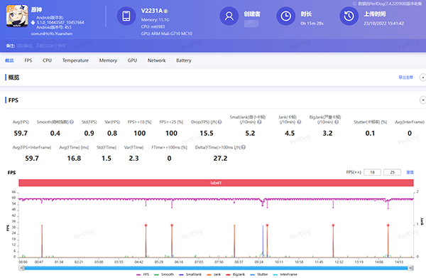 對于《原神》這種比較吃性能的游戲,普通手機(jī)想要流暢運(yùn)行都比較吃力,更別提全程滿幀運(yùn)行了。而iQOO Neo7不僅能流暢運(yùn)行《原神》,而且游戲的平均幀率還達(dá)到了59.7,這種接近滿幀的運(yùn)行表現(xiàn)確實(shí)讓人驚喜。