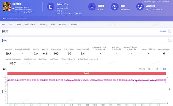最后是重量級的游戲《原神》,我們選取了全高畫質(zhì)的璃月港進行15分鐘跑圖測試。從幀率曲線可以看到,OPPO Reno9 Pro+的取向更加側重性能與功耗的均衡。