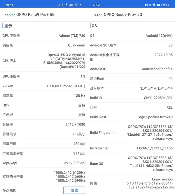 從安兔兔評(píng)測(cè)的系統(tǒng)信息中不難看發(fā)現(xiàn),Reno9 Pro+此次搭載的是高通驍龍8+主控。它采用了臺(tái)積電的4nm制程,并且也擁有改進(jìn)后的顯著能效比優(yōu)勢(shì)。