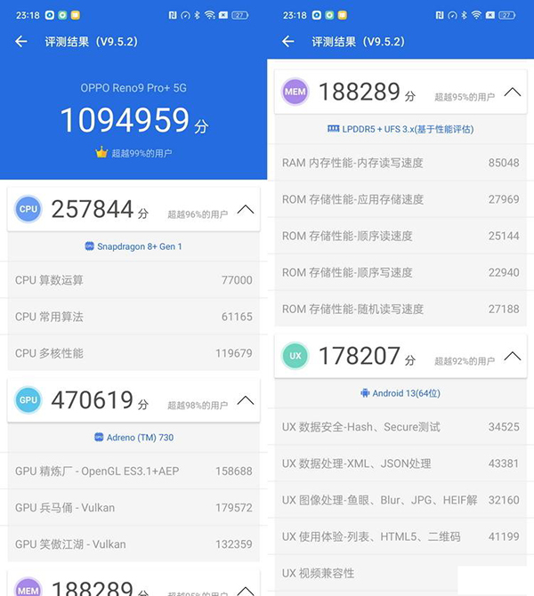當(dāng)然,這也就帶來了一個(gè)新的問題,在CPU主頻有所降低的情況下,Reno9 Pro+又有相當(dāng)于“原版”幾成的性能呢?