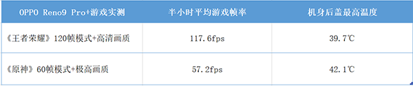 為了更好地驗(yàn)證OPPO Reno9 Pro+的實(shí)際性能表現(xiàn),我拿它試玩市面上熱門的幾款手游,其中在《王者榮耀》游戲中,在開啟120幀模式+高清畫質(zhì)的情況下暢快半小時(shí)后,測(cè)得游戲平均幀率達(dá)到117.6幀,后蓋最高溫度為39.7℃,幾近達(dá)到滿幀運(yùn)行水準(zhǔn)。