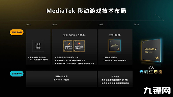 這次9200+升級重點在游戲上。包括硬件光線追蹤,游戲自適應(yīng)調(diào)控技術(shù),智能屏幕省點大師,VRS可變速率,渲染技術(shù),高性能低能耗。
