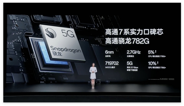 在具體的規(guī)格上,這個驍龍782G處理器采用的是6nm工藝制程,由1顆2.7GHz的Cortex-A78 + 3顆2.2GHz的Cortex-A78 + 4顆1.9GHz的Cortex-A55構(gòu)成,GPU為Adreno 642L。