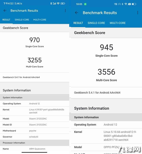 驍龍870單核成績970分,多核成績3255分;天璣8100單核成績945分,多核成績3556分,與硬件參數(shù)的表現(xiàn)一致。