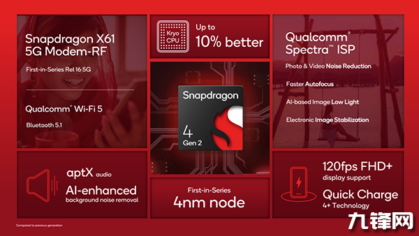 從參數(shù)上可以看出,這一新芯片從上一代的6納米工藝升級(jí)至4納米工藝,為低端智能手機(jī)帶來(lái)了顯著的提升。第二代驍龍4因?yàn)樯?jí)4nm工藝,性能比上代提升10%,相比它的上一代此次的驍龍4gen2絕對(duì)是進(jìn)行了大幅度升級(jí)的,因?yàn)橹暗尿旪?gen1是6nm工藝。