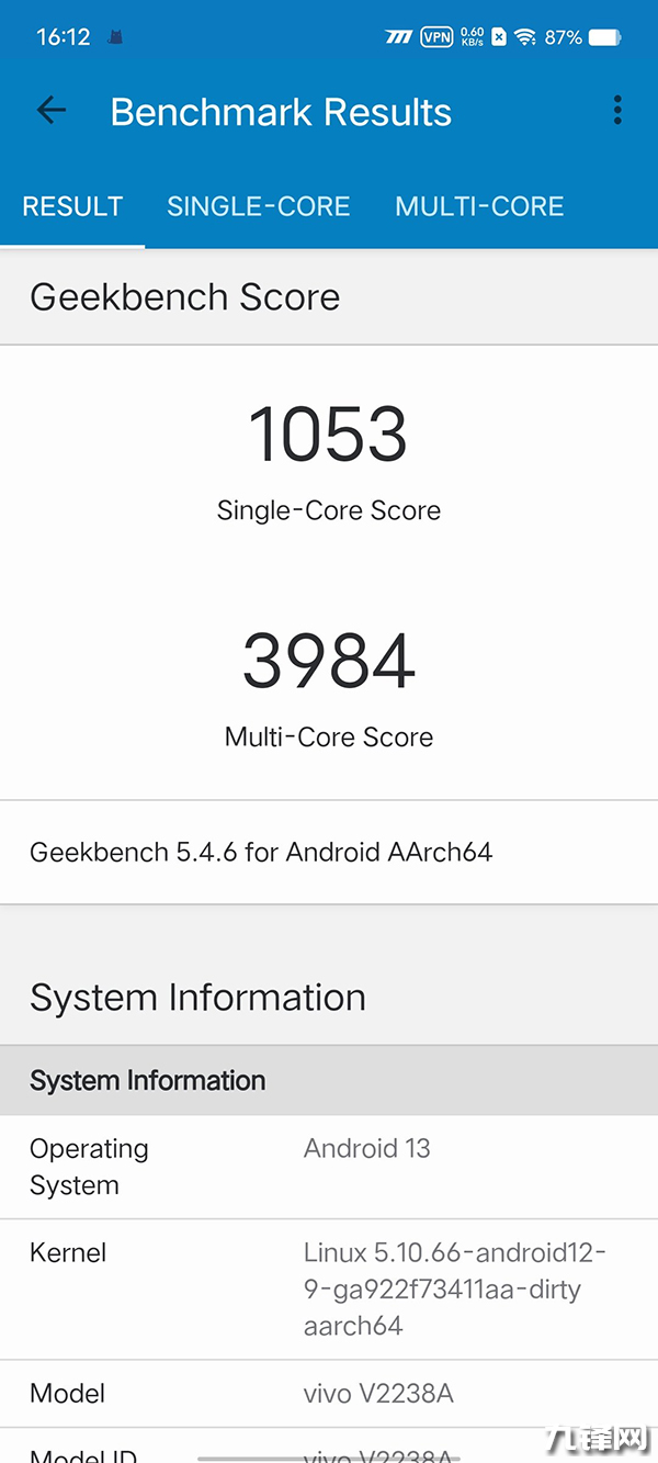 GeekBench5進行CPU測試,這顆天璣8200的單核得分為1053分,多核得分為3984分,作為一款中端芯片來說,這個表現(xiàn)算是比較中規(guī)中矩了。3DMark WildLife的跑分測試中,得分為6498分,平均38.9fps,在中端機里面表現(xiàn)也算比較優(yōu)秀的。