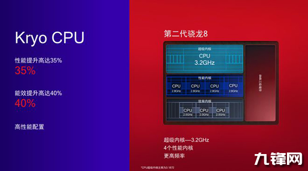 驍龍8Gen2采用了臺積電4nm工藝,CPU采用1+2+2+3的八核心架構(gòu)設(shè)計,其中包括一顆3.2GHz Cortex X3超大核,2顆2.8GHz Cortex-A715大核,兩顆2.8GHz Cortex A710大核,3顆2GHz Cortex A510的小核,GPU為Adreno 740