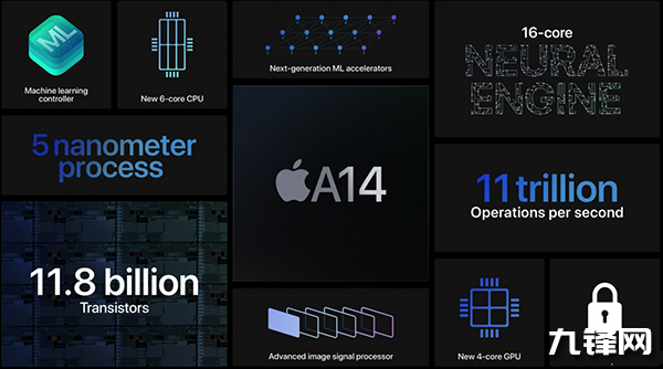蘋果A14采用的是臺積電5nm工藝打造,CPU采用2+4的六核心架構(gòu)設(shè)計,包括2顆2.99GHz高性能核心FireStorm + 4顆1.82GHz高能效核心IceStrom,還有4核心GPU,集成16核NPU。