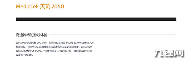 具體來(lái)看,天璣7050芯片的CPU架構(gòu)包括兩顆主頻為2.6GHz的Cortex-A78性能核心和六顆主頻為2.0GHz的Cortex-A55能效核心。GPU部分則為Mali-G68 MC4,可支持120Hz的刷新率和2520×1080的屏幕。