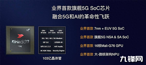 麒麟990 5G版采用臺積電7nm工藝,8核心CPU設(shè)計,具體由2顆2.86GHz的Cortex-A76超大核心+2顆2.36GHz的Cortex-A76大核+4顆1.95GHz的Cortex-A55小核心組成,GPU是16核的Mali-G76,存儲部分,支持LPDDR4X內(nèi)存和UFS3.0閃存,AI部分,自研達芬奇架構(gòu)NPU,2個大核+1個小核,ISP5.0圖像處理器,集成了5G基帶。