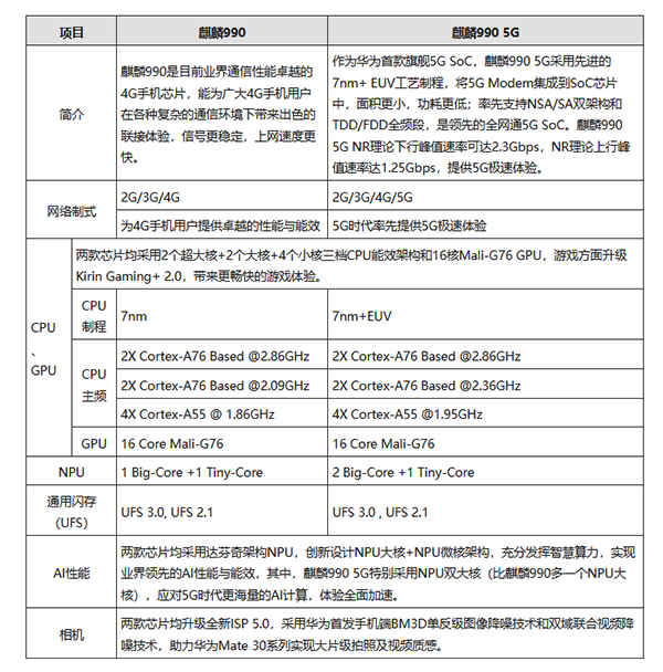 這個麒麟990有兩種款式, 一個是不支持5G版的,一個是支持5G版本的,下面一次來說一下了。