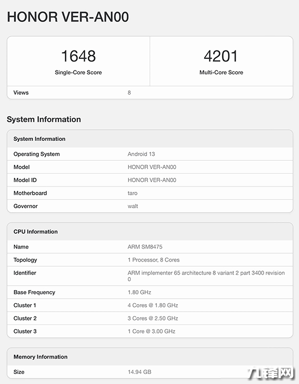 單核是1648分,多核是4201分,這是3.0GHz驍龍8+Gen1芯片在Geekbeac中h6的跑分,目前這個處理器屬于高端級別的性能水準。