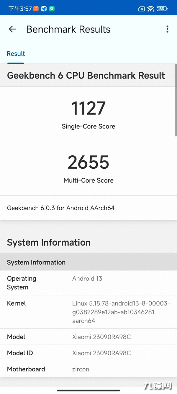 單核是1127分,多核是2655分,性能上屬于中端級別,與這個驍龍865性能差不多。