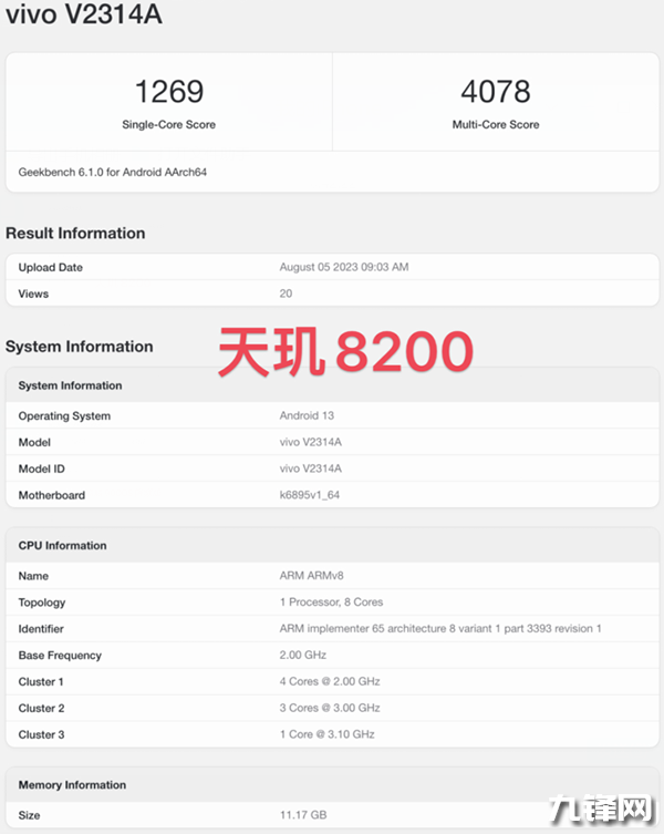 我們再看看天璣8200的跑分單核1269,多核4078,可以看出,整體的性能上兩者差別微乎其微,降版的多核心性能弱上了一些,而標準版的多核心性能比天璣8200更強一些。