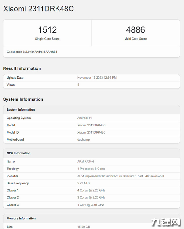 單核1702,多核4536,屬于中端級別的性能水平,和這個(gè)驍龍8+的水平是同一檔次。