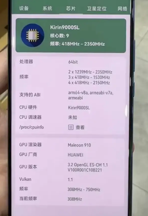 可以說,這個麒麟9000SL和麒麟9000S的大核、中核都是自研的泰山架構(gòu),中核頻率都是2.15Ghz,中核都是A510,GPU都是750MHz的馬良910。
