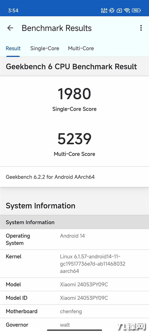 CPU方面,實(shí)測(cè)搭載驍龍8s Gen3的小米Civi4 Pro Geekbench6單核1980分,多核5239分。