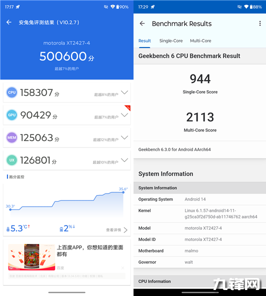 50萬分,驍龍6s Gen3在安兔兔V10得到了500600分的總成績,對比現(xiàn)在最新的旗艦處理器的230萬分,再看看這個(gè)50萬分,基本上就是低端級別的性能水平,另外在Geekbench6中,單核成績944分,多核成績2113分。