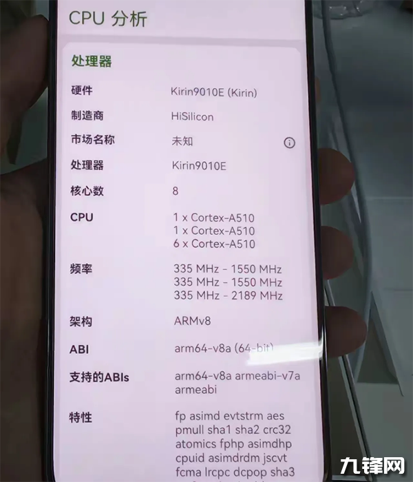 麒麟9010E處理器的CPU采用的是8核12線程,其中CPU包括2顆2189MHz頻率的超大核+6顆2180MHz頻率的大核以及4顆1550MHz頻率的小核,GPU采用的是馬良910,最高頻率為750MHz。