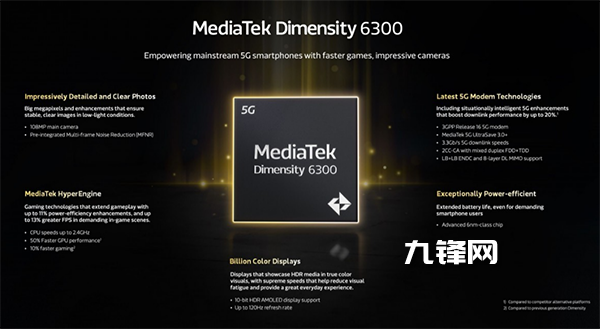 在個(gè)規(guī)格方面,這個(gè)天璣6300采用臺(tái)積電6nm工藝打造,CPU為八核心設(shè)計(jì),包括2個(gè)2.4GHz Cortex-A76和6個(gè)2.0GHz Cortex-A55,GPU則為Arm Mali-G57 MC2,支持最高2133MHz的LPDDR4x和UFS 2.2。