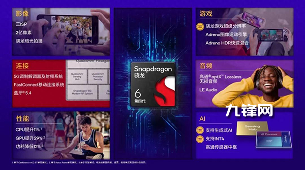 并且這個(gè)6Gen4最高支持FHD+ 144Hz屏幕顯示。支持藍(lán)牙5.4、WiFi-6E, 支持高通?aptX Lossless無(wú)損音頻和LE Audio,最高支持64MP單攝,或32MP+16MP雙攝。支持生成式AI,支持INT4。支持三頻定位(L1/L5/L2)。