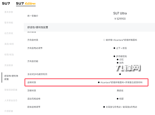 小米SU7 Ultra的座椅是什么材質(zhì)