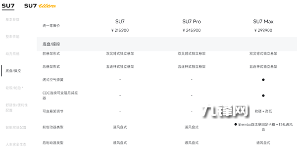 需要注意的是,小米SU7和SU7 Pro都不是空氣懸掛,只有SU7 MAX版和Ultra版是空氣懸掛。