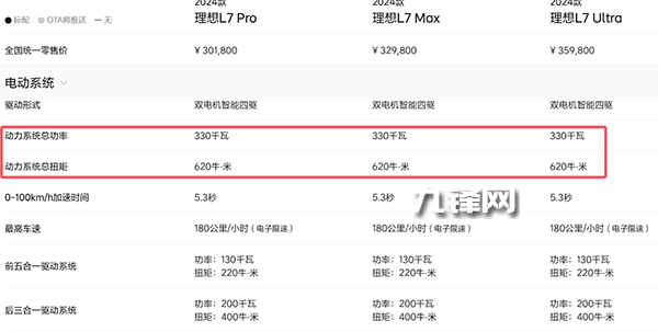 功率是330千瓦,扭矩是620牛·米,理想L7配置的是雙電機四驅(qū)動力系列,雙電機的總功率是330千瓦,扭矩是620?!っ?。