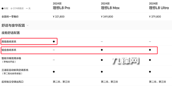 是,理想L8 Max和Ultra版本是鉑金音響系統(tǒng),而理想L8 Pro則是高級音響系統(tǒng),并不是鉑金音響系統(tǒng)。