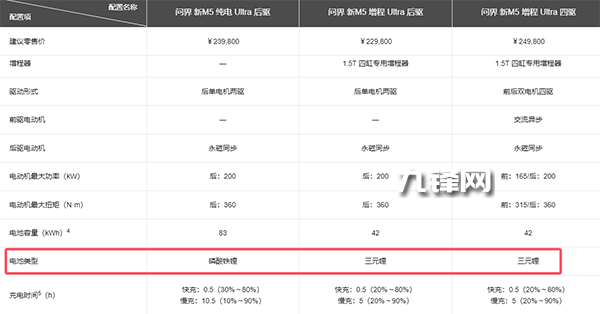 純電版本的是磷酸鐵鋰電池(83kWh),增程版本的是三元鋰電池(42kWh)。