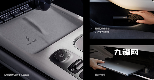 中控屏下方2個(gè)Type-C是67W,手套箱內(nèi)1個(gè)Type-A是12W,中央后視鏡底座1個(gè)Type-C是12W,中央扶手箱后方2個(gè)Type-C是18W。