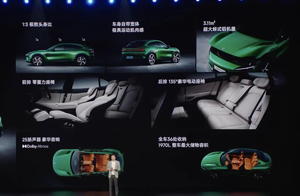 雙電機(jī)四驅(qū)Pro版本也不甘示弱,綜合功率365kW,峰值扭矩690N·m,百公里加速4.27秒,最高時速240km/h,CLTC續(xù)航達(dá)770km。