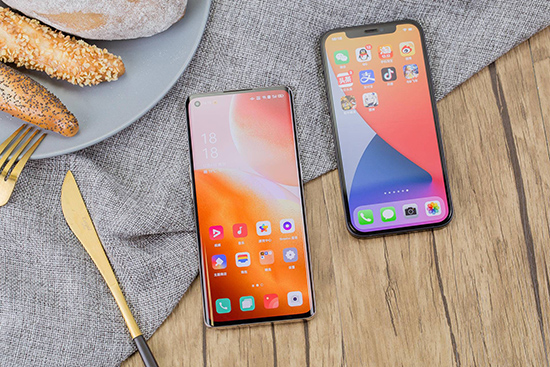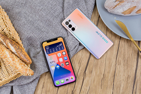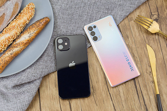(左:iPhone 12;右:OPPO Reno5 Pro)