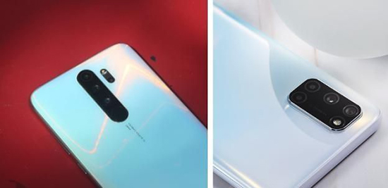 在背面設(shè)計上,紅米Note8 Pro中軸長條相機(jī)的布置實(shí)在有點(diǎn)太老套了,視覺印象不如OPPO A52矩形列陣好看。其次,在背部的質(zhì)感設(shè)計上,OPPO A52星形效果更具立體感,而紅米Note8 Pro漸變效果其實(shí)也不錯,這里主要看個人的審美!