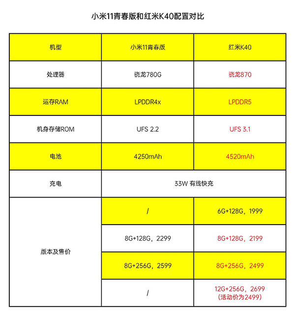 那這兩款定價(jià)相似的手機(jī)該怎么選呢?先說(shuō)結(jié)論,青春版玩得就是啥也不懂的青春,如果非要在這兩款手機(jī)里選一款,那便選擇兄弟旗艦——紅米K40吧!具體原因見(jiàn)下——